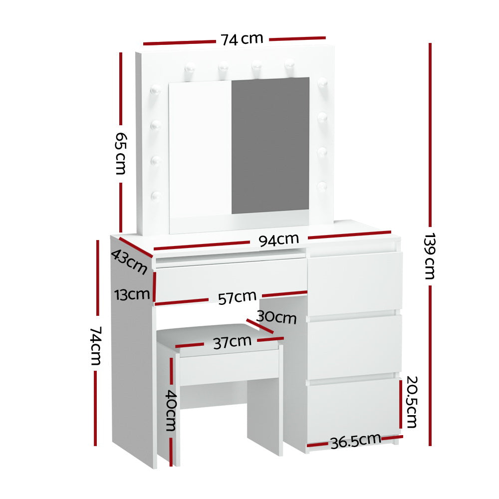 The Celeste LED Dressing Table in White delivers Hollywood glamour with its illuminated 12-bulb mirror design. This vanity table transforms your beauty routine with professional-quality lighting and generous storage space.