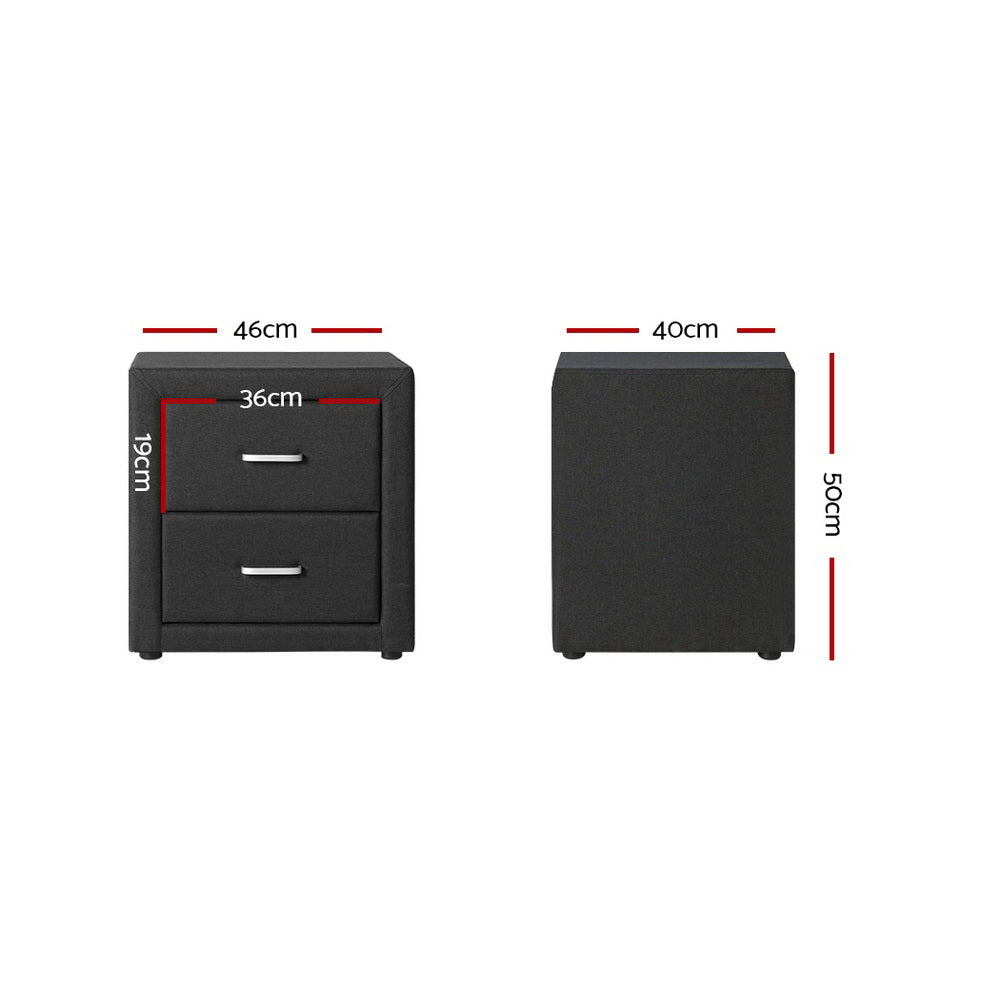 Caden Fabric Bedside Table – Charcoal – 2 Drawer